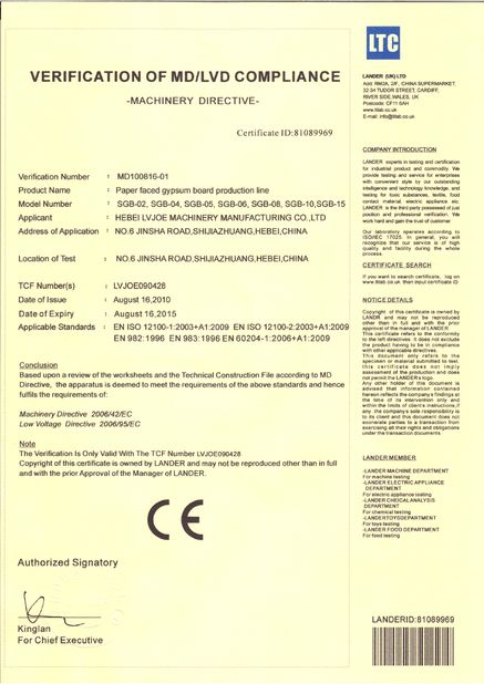 In last few years we have successfully developed many kinds of industrial equipments including kinds of automatic paper faced gypsum board production line, gypsum powder production line, gypsum block production line, mineral wool board production line, and machines which are related with adhesive tape and nails,etc .